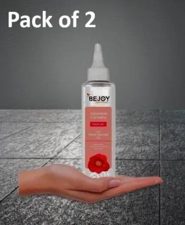 Product Name: Bejoy Japanese Camellia Hair Oil 120 ml (Pack of 2) Package Contains: It has 2 Piece of Hair Oil Composition: Japanese Camellia, Sesame Oil, Coconut Oil, Vitamin E Product Quantity: 120ml Each Hair Type: All Hair Type Form: Liquid Combo: Pack of 2 Ideal for: Women Weight: 400 gm